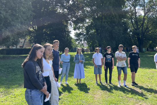 During first days a program School without hatred prepares cognitive activities for first-year students to get them know each other better. They spend their first lessons outside in school garden and then have a tour of the building.
